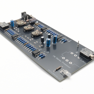 Der CW-Stereoprozessor basiert auf den Veröffentlichungen von G6CJ, G3OTK und Y22TO. Er wandelt das CW-Signal, welches in Mono empfangen wird, in ein Pseudo-Stereosignal um. Als Ergebnis entsteht im Kopfhörer der Eindruck räumlichen Hörens. Beim Abstimmen des Empfängers laufen die Signale im Kopf von links nach rechts bzw. umgekehrt. Benachbarte Signale sind links und rechts vom mittigen Nutzsignal zu hören. Weiterlesen